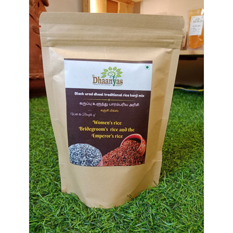 NutriShop’s Chemical Free & Preservatives Free Pure Karupu Ulunthu Kanji Mix is a traditional, nutrient-rich health drink made using time-tested ingredients. This wholesome mix includes Karupu Ulunthu (Black Urad Dal), Poongar Rice, Karupu Kavuni Rice, and Mappilai Samba Rice, carefully processed to retain their natural goodness.