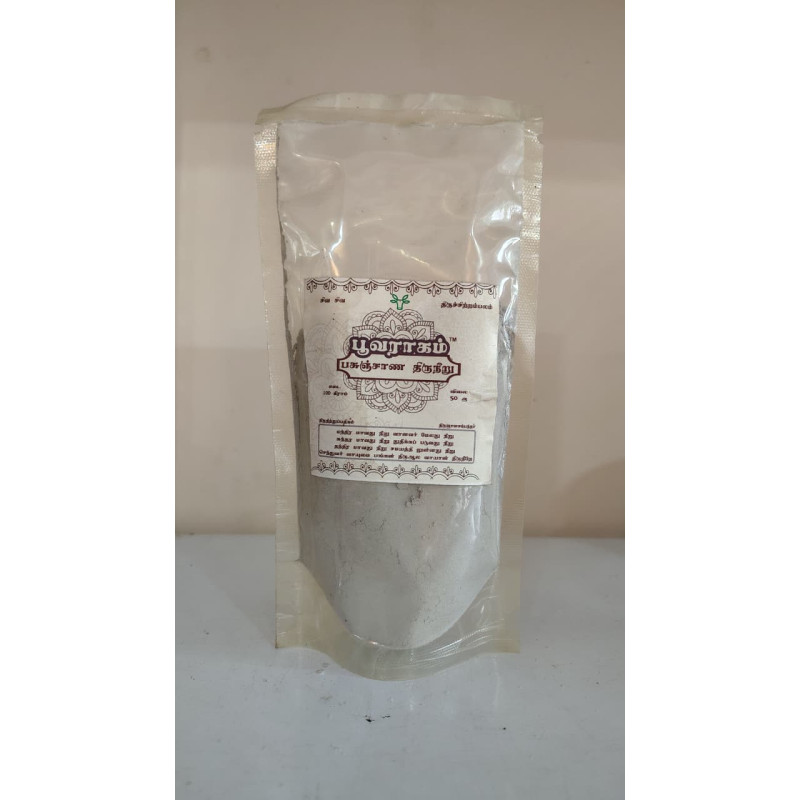 Pure herbal Pasunchana Vibhoothi made using traditional methods with cow dung and sacred herbs. Completely chemical free, it enhances spiritual energy, protects the aura and is ideal for daily poojai.